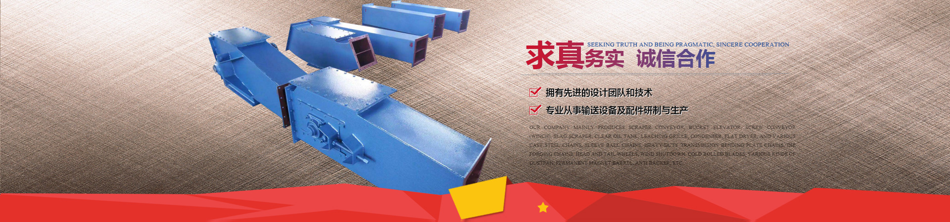 我公司主要生產(chǎn)碳鋼,不銹鋼等各種材質(zhì)的刮板輸送機、斗式提升機、螺旋輸送機(絞龍)、刮渣機、澄油箱、浸出柵板、冷凝器、平板烘干機、以及各種鑄鋼鏈條、套筒滾珠鏈條、重載傳動彎板鏈、模鍛鏈條、頭尾輪、關(guān)風(fēng)器、冷軋葉片、各種畚斗、永磁筒、止逆器等。產(chǎn)品銷往全國80多個省市,并出口俄羅斯、東南亞、非洲等地,受到國內(nèi)外客戶一致好評。